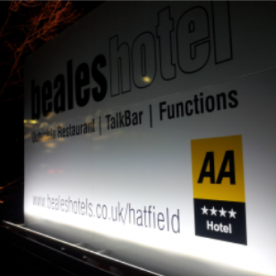 BH illuminated signs have gone up outside the hotel.
